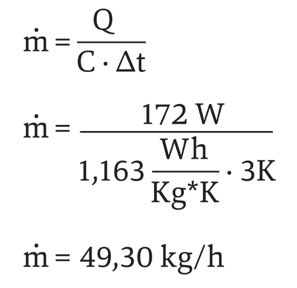 Bei einer zugrunde gelegten Spreizung von 3 Kelvin ergibt sich ein Volumenstrom von ca. 50 kg/h.